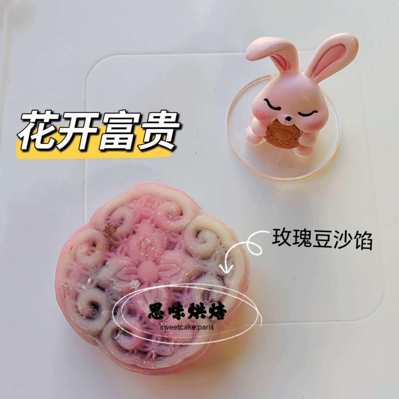 花开富贵冰皮月饼75g,红豆玫瑰豆沙馅,需冷藏
